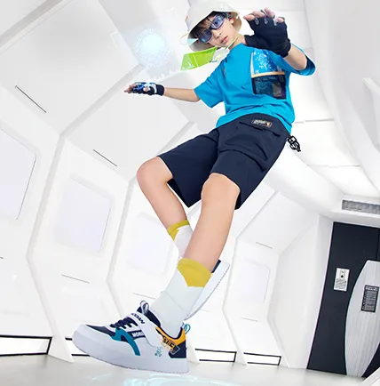 以运动为基础,接轨休闲潮流,提供舒适、潮流时尚的产品,以匹配儿童日常生活穿搭需求